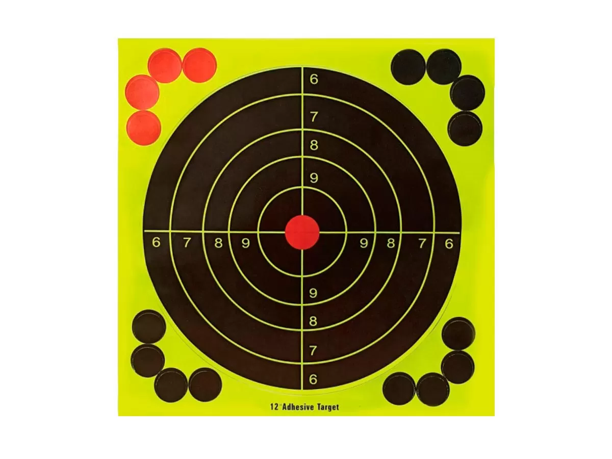 Основа мишени имеет клеевой слой, благодаря чему её можно легко и быстро наклеить на любую гладкую поверхность: мишенную установку, картон, фанеру и даже пластиковую бутылку или канистру. На каждом листе с мишенью есть 16 круглых наклеек-заплаток для маскировки попаданий.