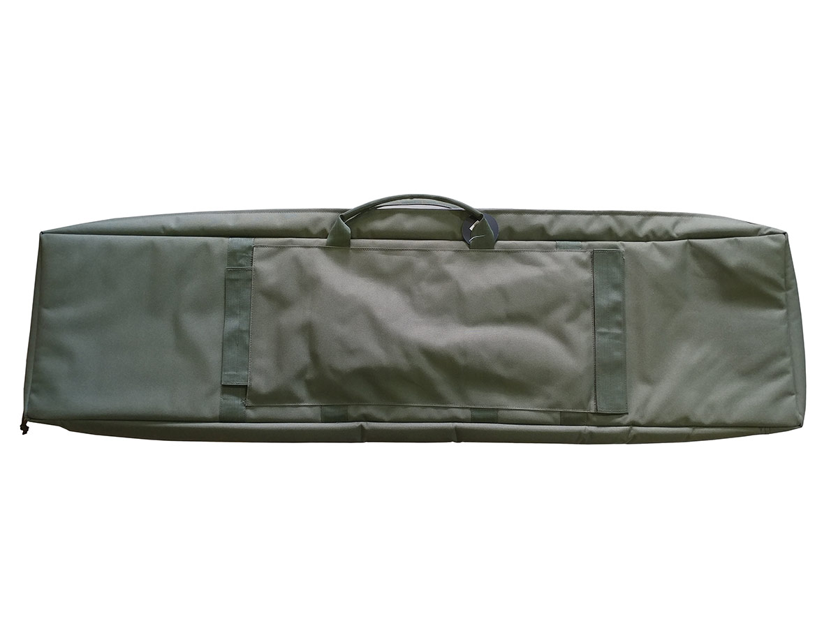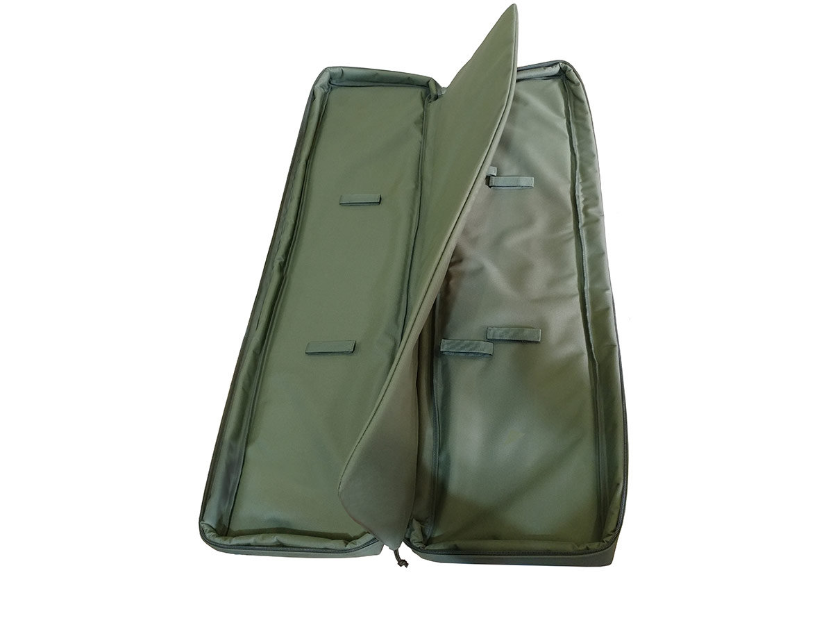 Продуманный чехол с разделителем основного отделения на две секции, благодаря чему можно транспортировать две и более единицы длинноствольного оружия. Внутри предусмотрены крепежные элементы с липучкой "велкро".